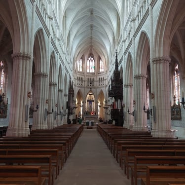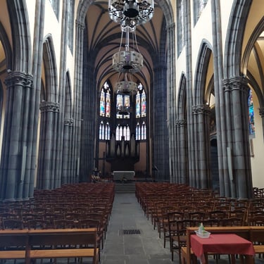 Cathédrale Notre-Dame-de-l'Assomption de Clermont-Ferrand (63), Cathédrale Saint-Étienne de Bourges (18), Cathédrale Saint-Étienne de Cahors (46), Cathédrale Saint-Étienne de Limoges (87), Cathédrale Saint-Maurice d'Angers (49), Cathédrale Notre-Dame-et-Saint-Privat de Mende (48), Cathédrale Notre-Dame-de-l'Annonciation de Moulins (03), Cathédrale Saint-Front de Périgueux (24), Cathédrale Saint-Pierre de Saint-Flour (15), Cathédrale Saint-Jean-Baptiste de Bazas (33), Cathédrale Saint-Apollinaire de Valence (16), Cathédrale Notre-Dame-de-l'Assomption ou cathédrale Santa Maria Assunta d’Ajaccio (20)...